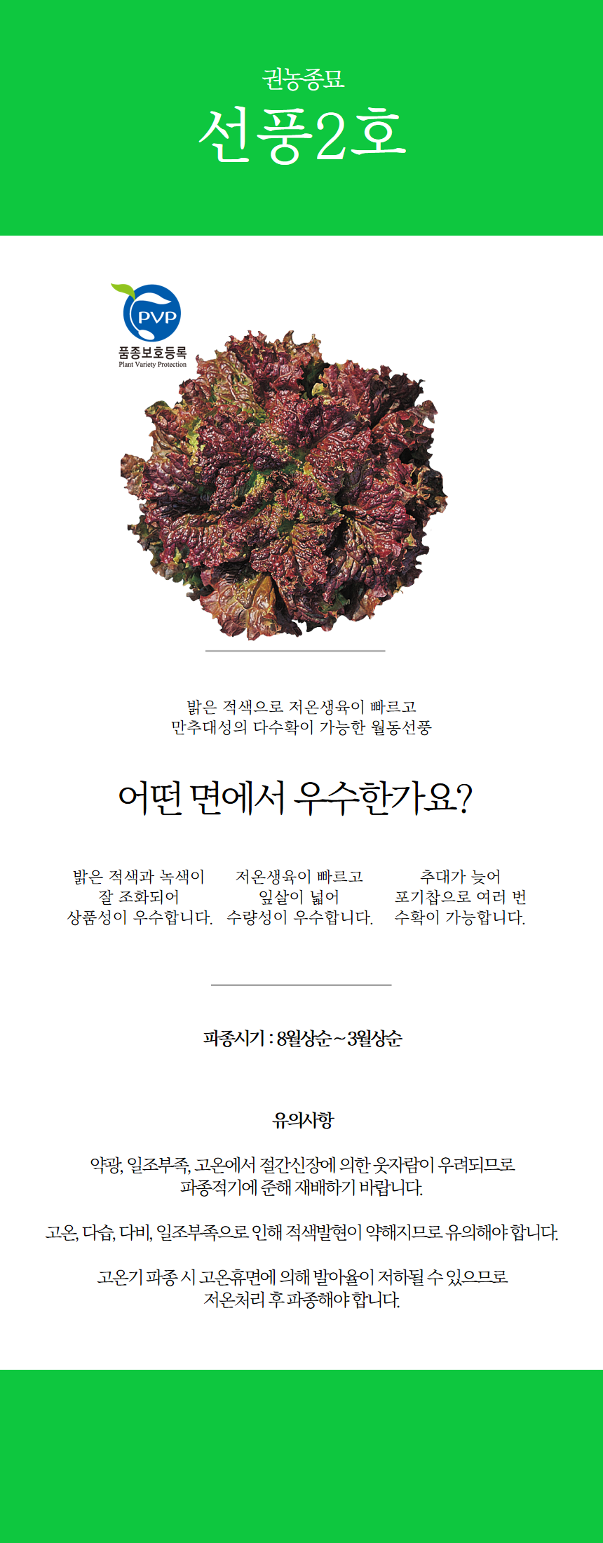 “밝은 적색으로 저온생육이 빠르고 만추대성의 다수확이 가능한 월동선풍“