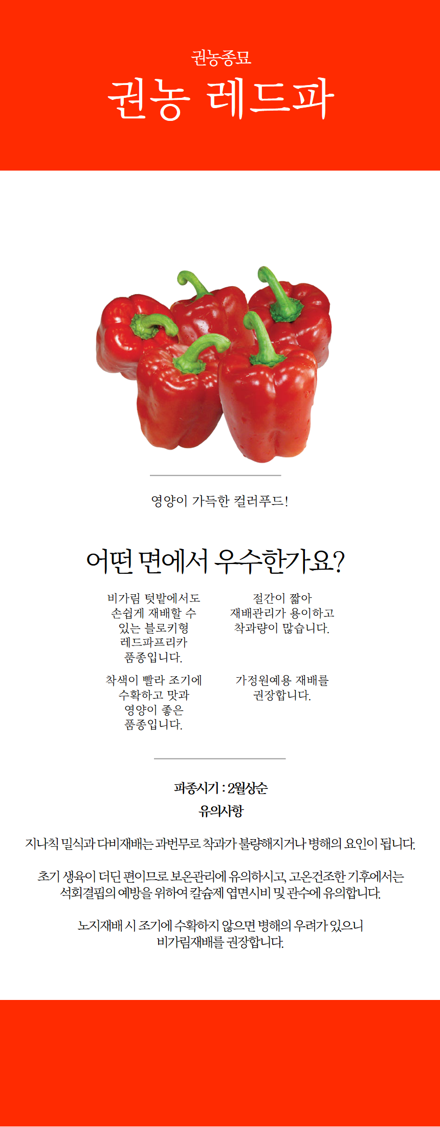 비가림 텃밭에서도 손쉽게 재배할 수 있는 블로키형 레드 파프리카 품종입니다.