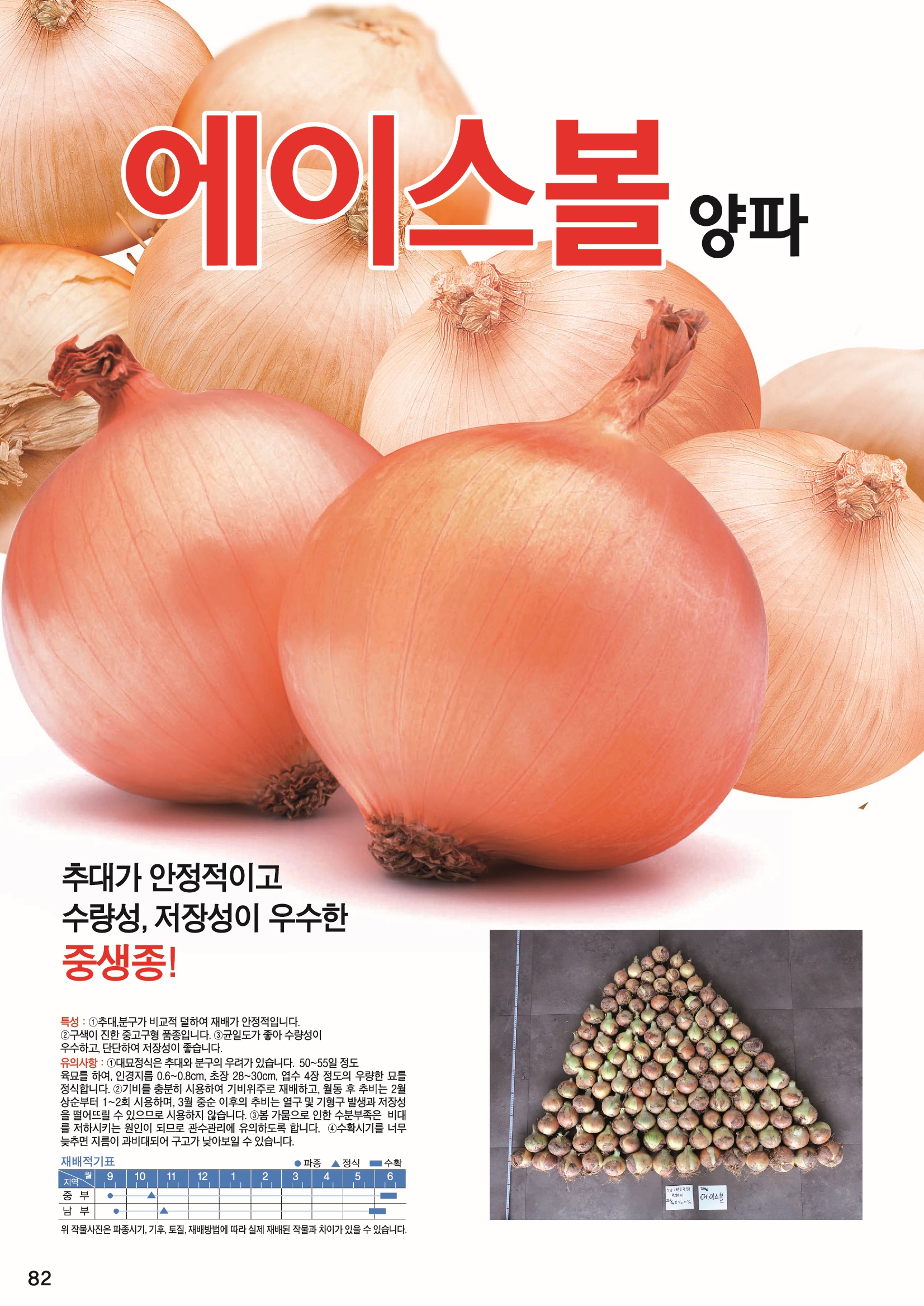 추대가 안정적이고 수량성과 저장성이 우수한 중생종 양파입니다.